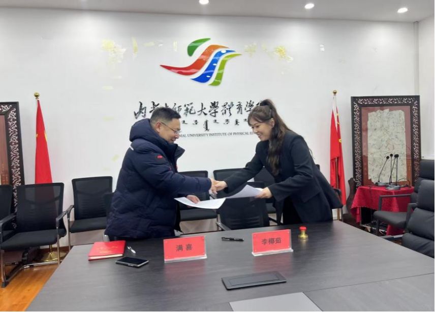 本次签约授牌仪式由星空·官方端在线登入副院长满喜主持,同时星空·官方端在线登入党委副书记、副院长敖永胜、内蒙古师范大学实践教学科科长董振华、内蒙古特荣体育发展有限责任公司法人李椰茹以及法律顾问朝鲁门、星空·官方端在线登入体育教育系主任孟克满都胡、运动训练系主任贾佳、社会体育指导与管理系主任齐晓丹共同出席了本次仪式。