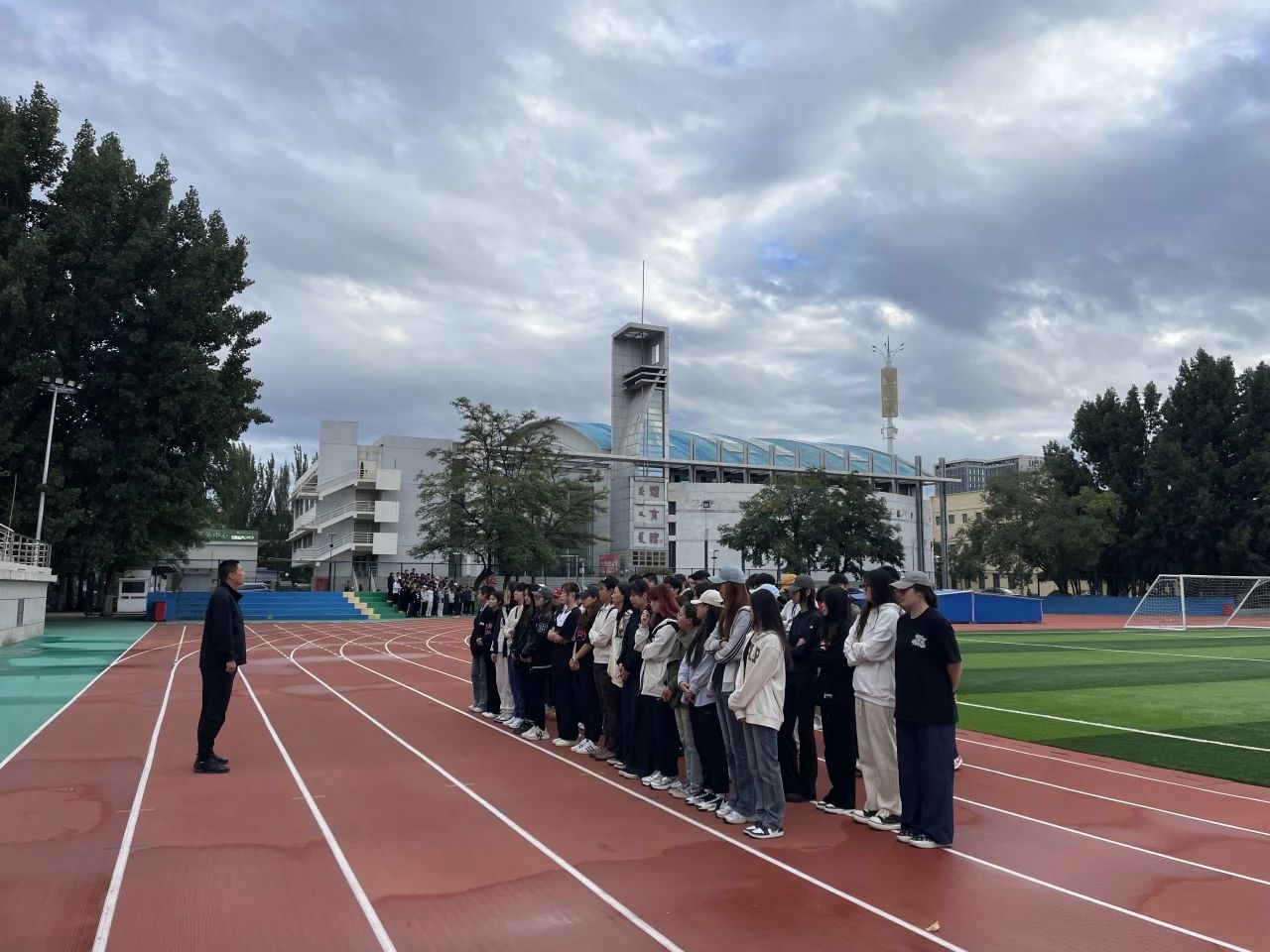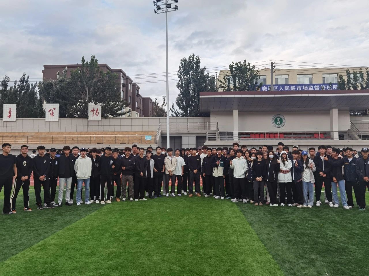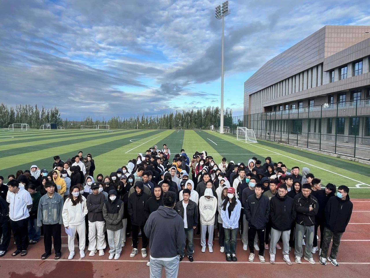 为切实做好我院2024秋季学期开学初学生教育管理工作,加强学生日常管理,2024年8月26日在赛罕校区西操场与足球学院进行早点名,组织开展“开学第一课”。