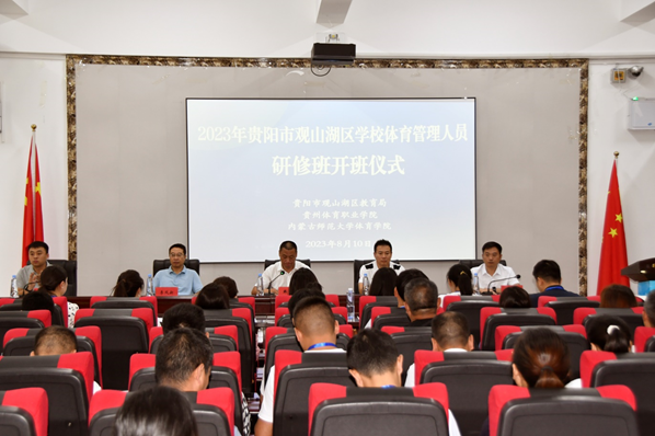 8月9日上午,2023年贵阳市观山湖区学校体育管理人员研修班在星空(中国)正式开班。星空(中国)党委书记韩武,星空·官方端在线登入党委副书记、副院长敖永胜,星空·官方端在线登入副院长李凤新,贵阳市观山湖区青少年艺术教育中心主任段练飞参加了开班仪式。开班仪式由贵阳市观山湖区教育局团委书记崔鹏主持。